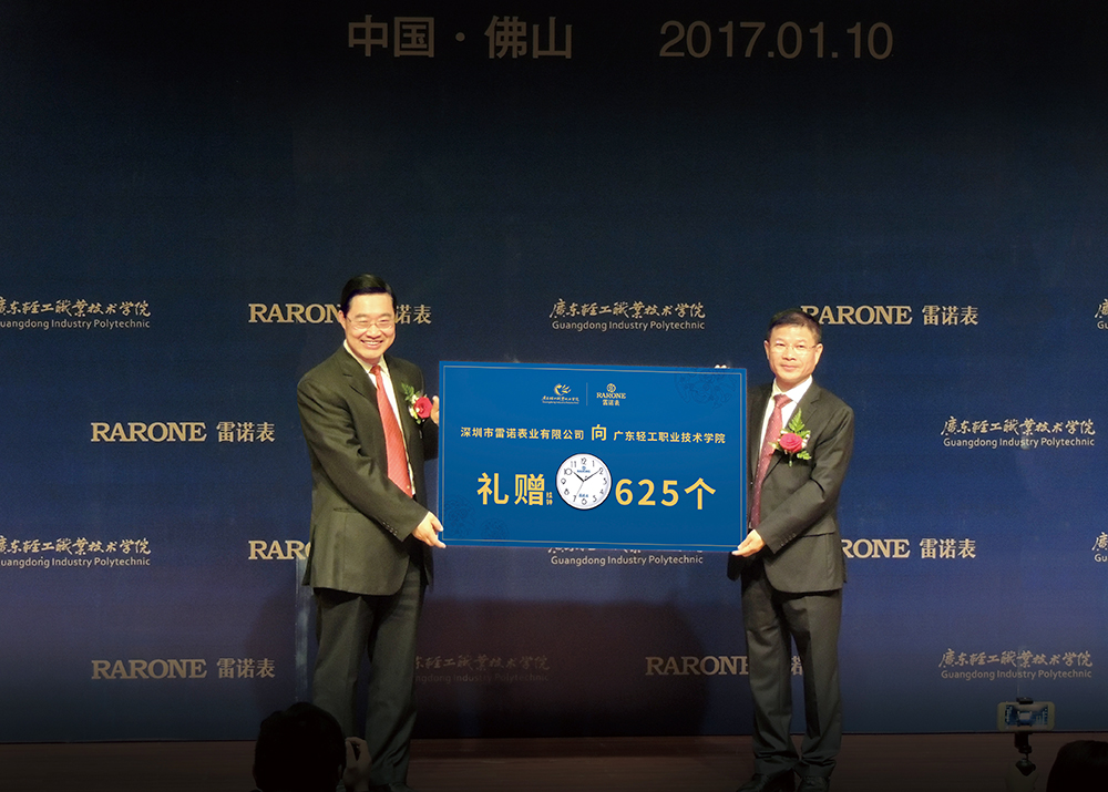 當前,校企合作是新形勢下企業發展進步的內在要求和實現雙贏的戰略舉措,既是當務之急,又是長遠大計。相信在深圳雷諾表業有限公司與廣東輕工職業技術學院的雙方努力下,廣東輕院·雷諾鐘表學院將為鐘表行業提供產學研附屬基地,并將為鐘表行業培養專業人才,為鐘表行業輸送高素質、高匹配度的鐘表制造、智能制造以及高精密制造的專業人才。