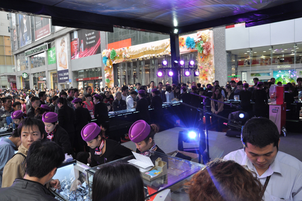 本次是雷諾表2012年年終感恩惠利——全國大型巡展深圳站的活動,通過一系列限量特惠表、贈送多重好禮等促銷方式,并現(xiàn)場抽取千足金金條、ipad、真皮錢包等豪華大禮,感恩鉅惠消費者的支持和喜愛。特供大量高品質貨品,吸引了大批消費者的搶購,使得巡展現(xiàn)場人山人海,熱鬧非凡。
